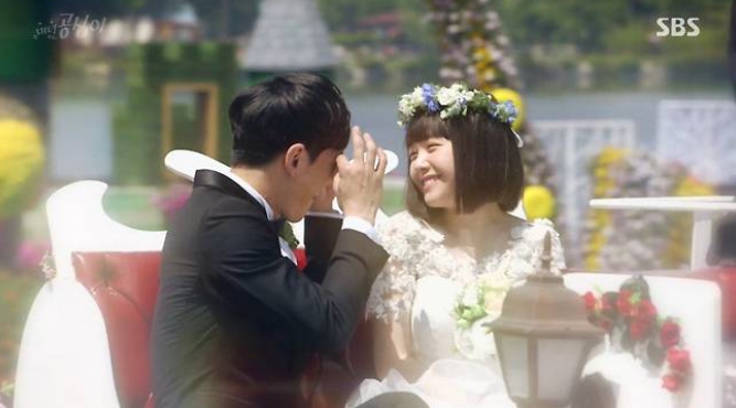 방민아가 웨딩드레스를 입고 마치 실제 결혼을 하는 것처럼 상상하는 장면이 연출되었지요. 어떻게 보면 공심이의 상상이 드라마로 만들어졌고, 출연하는 배우의 결혼이 현실이 된 것 같습니다. 이런 것을 인연이라고 말하는 것이 아닐까요?